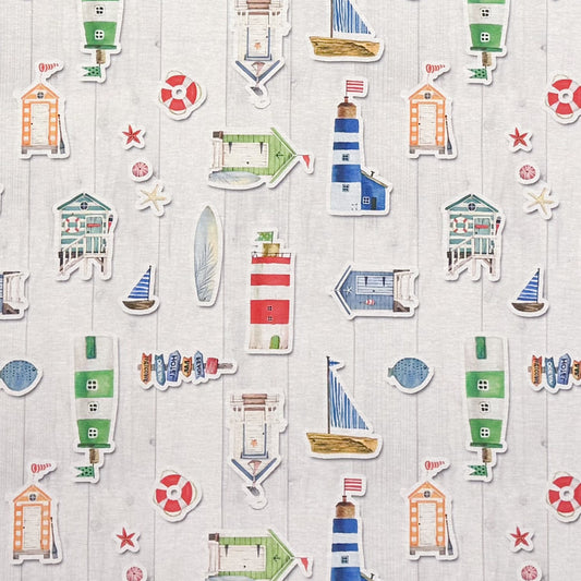 Nappe jacquard en coton enduit antitache MOANA navires maritimes phare carré rond ovale