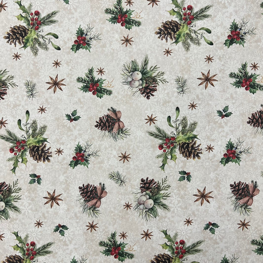 Nappe jacquard en coton enduit GLORIA motif bordure Avent Noël pommes de pin