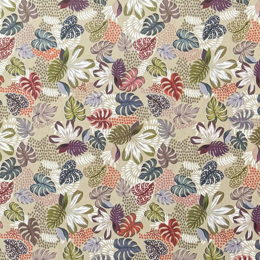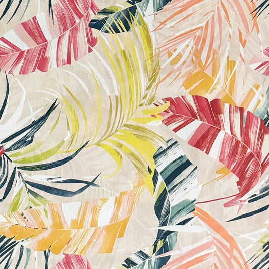 Nappe jacquard en coton enduit avec protection antitache AILEN jungle feuilles colorées palmiers carré rond ovale