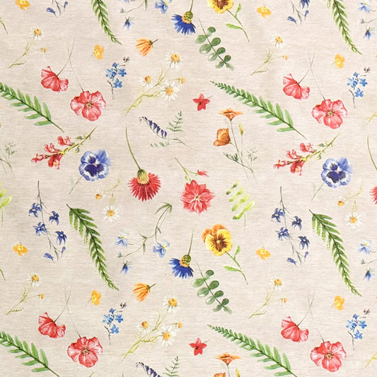 Nappe jacquard coton enduit DP525 prairie fleurie abstrait carré rond ovale