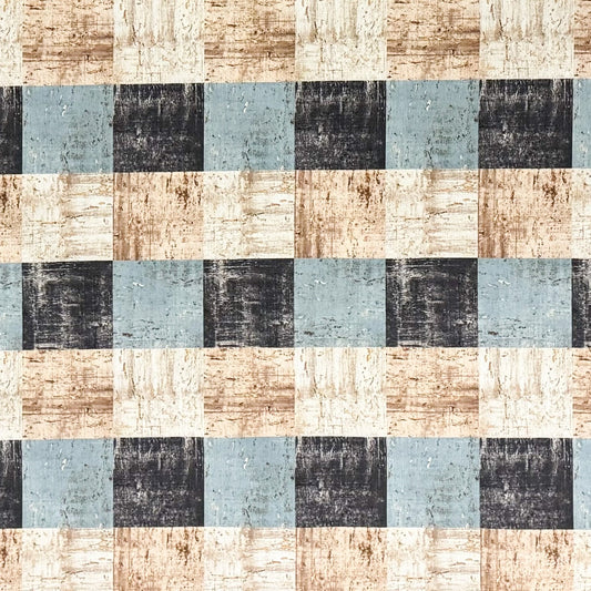 Nappe jacquard en coton enduit antitache ALEXWY carreaux bleu beige carré rond ovale