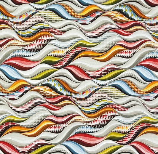 Nappe jacquard coton enduit 160 cm de large DP RAYA1 rayures fluo rétro carré rond ovale