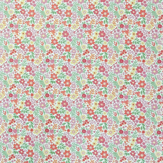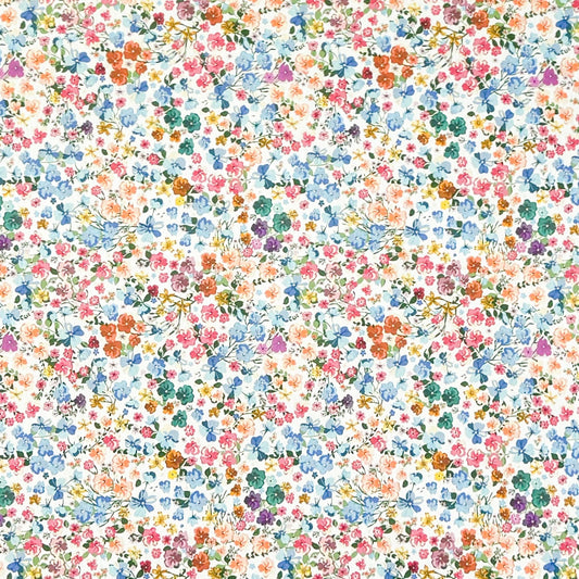 Nappe jacquard en coton enduit avec protection antitache DG135 fleurs de prairie colorées carrées rondes ovales