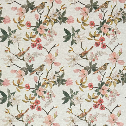 Nappe jacquard coton enduit DP546 fleurs de magnolia oiseaux carré rond ovale