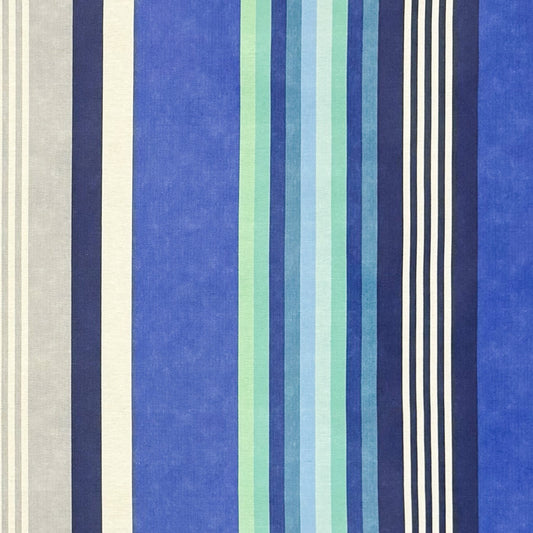 Nappe jacquard coton enduit 160 cm de large DP RAYA4 rayures bleu azur carrée ronde ovale