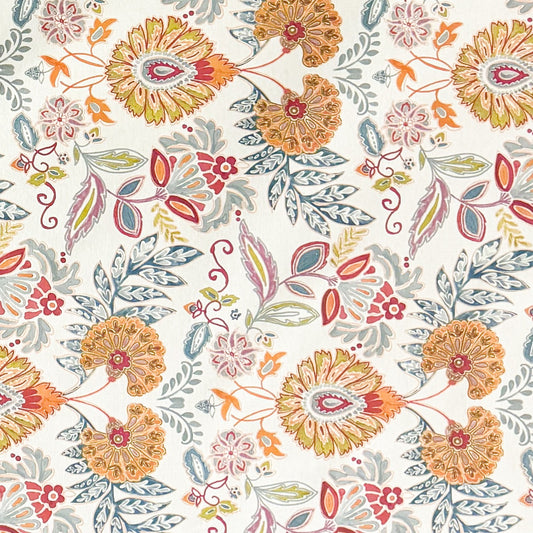 Nappe jacquard en coton enduit antitache GORIEL2 orange bleu fleurs et fleurs carré rond ovale