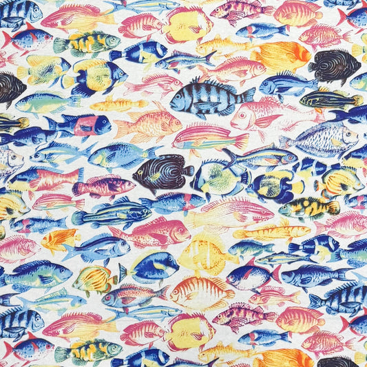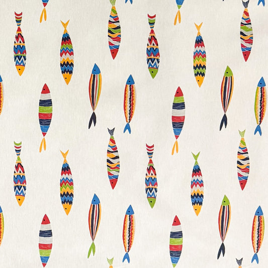 Nappe jacquard en coton enduit antitache GUPPY poisson coloré maritime carré rond ovale