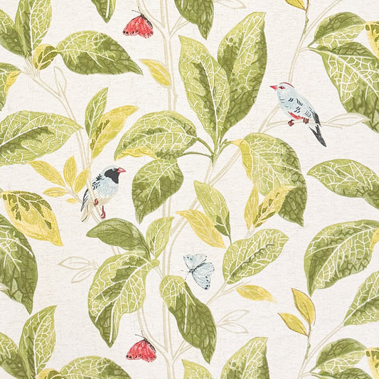 Nappe jacquard en coton enduit antitache INGREZ Jungle Birds carrée ronde ovale