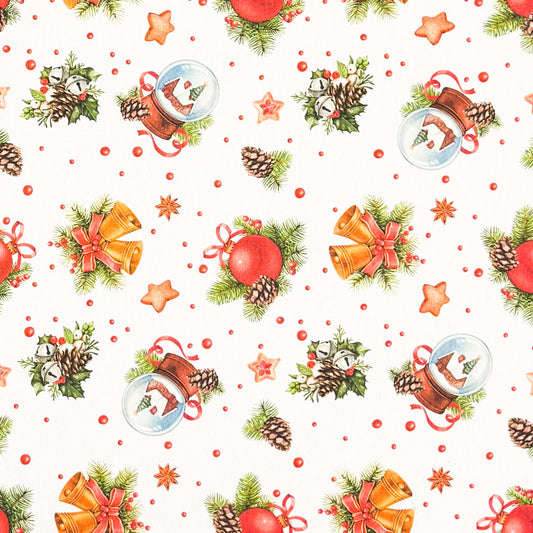 Nappe jacquard en coton enduit avec protection antitache ZURI branches de sapin de Noël boule à neige carrée ronde ovale