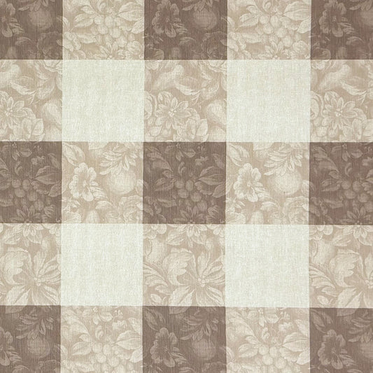 Nappe jacquard coton enduit MILLET TAUPE carreaux fleurs carré rond ovale