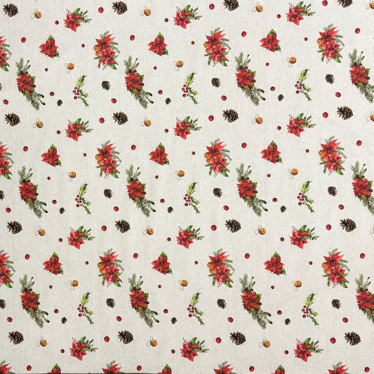 Nappe jacquard en coton enduit avec protection antitache NAZA Noël poinsettia carré rond ovale