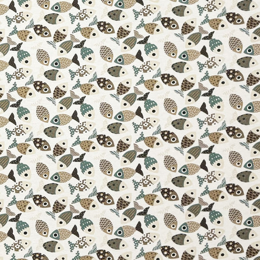 Nappe jacquard coton enduit 160 cm de large POUSSIN poisson maritime carré rond ovale