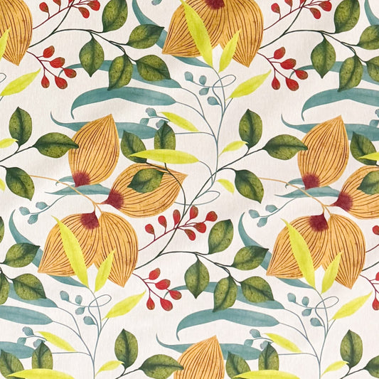 Nappe jacquard coton enduit 160 cm de large DP530 fleurs feuilles automne carré rond ovale