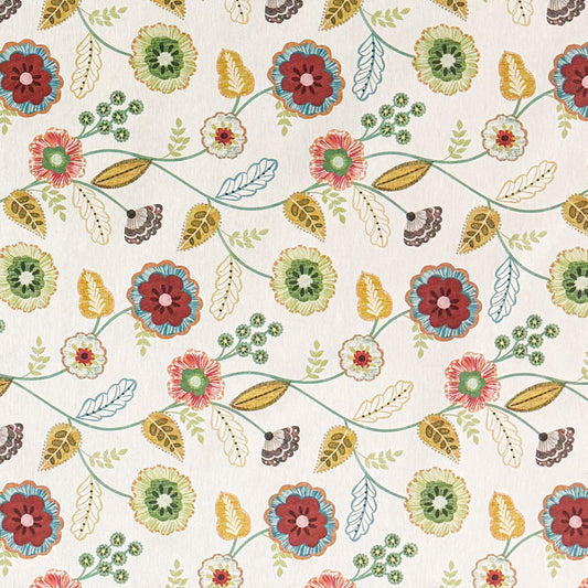 Nappe jacquard en coton enduit antitache DG156 fleurs colorées rétro carré rond ovale