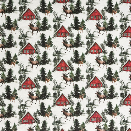 Nappe jacquard en coton enduit antitache RENNOS Noël cerf sapin carré rond ovale