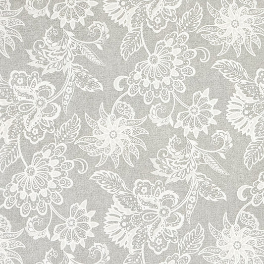 nappe textile jacquard coton enduit fleurs de JASMIN sur ovale ronde grise angulaire