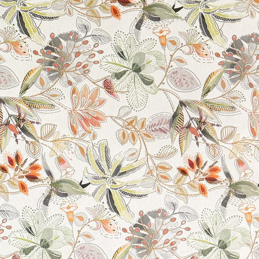 Nappe jacquard coton enduit DP530 fleurs feuilles automne carré rond ovale