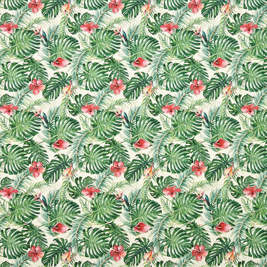Nappe jacquard en coton enduit antitache IPANEMA jungle perroquet hibiscus carré rond ovale