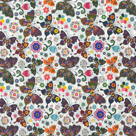 nappe textile jacquard coton enduit FB SOROLLA 003 papillons colorés carrée ronde ovale
