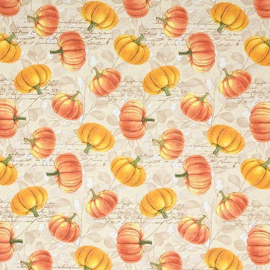 Nappe jacquard en coton enduit antitache BAZA citrouille feuilles d'automne carré rond ovale