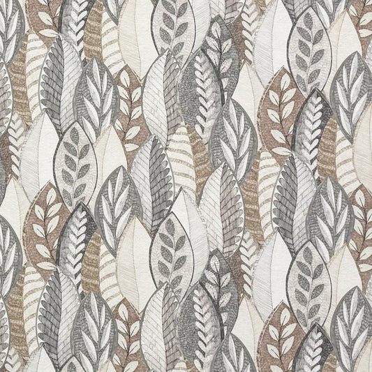 Nappe jacquard en coton enduit antitache MINTA BEIG beige gris feuilles feuillage automne carré rond ovale