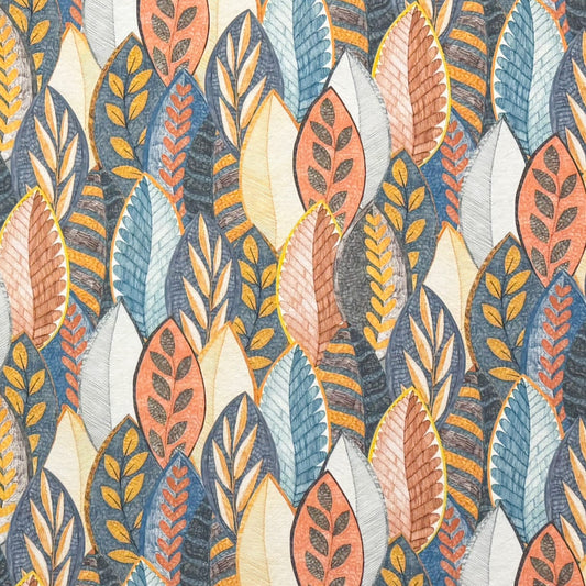 Nappe jacquard en coton enduit antitache MINTA MULTI feuilles colorées feuillage automne carré rond ovale