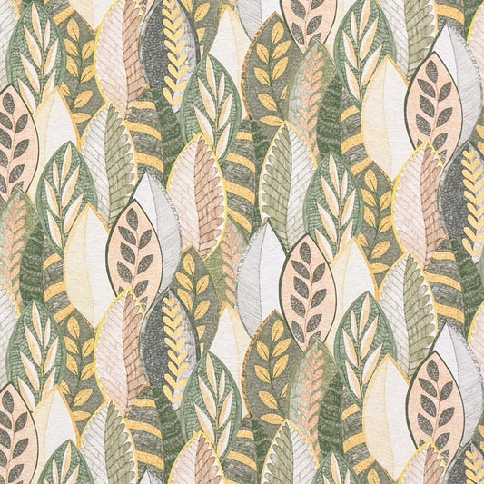 Nappe jacquard en coton enduit antitache MINTA VERDE beige vert feuilles feuillage automne carré rond ovale