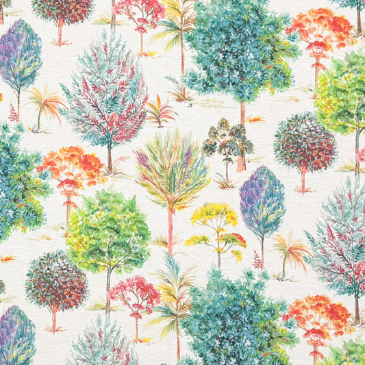 Nappe jacquard en coton enduit avec protection anti-taches PRIMAVERA arbres colorés forêt carrée ronde ovale