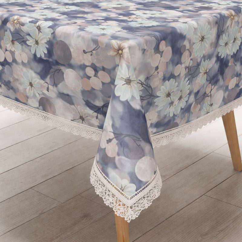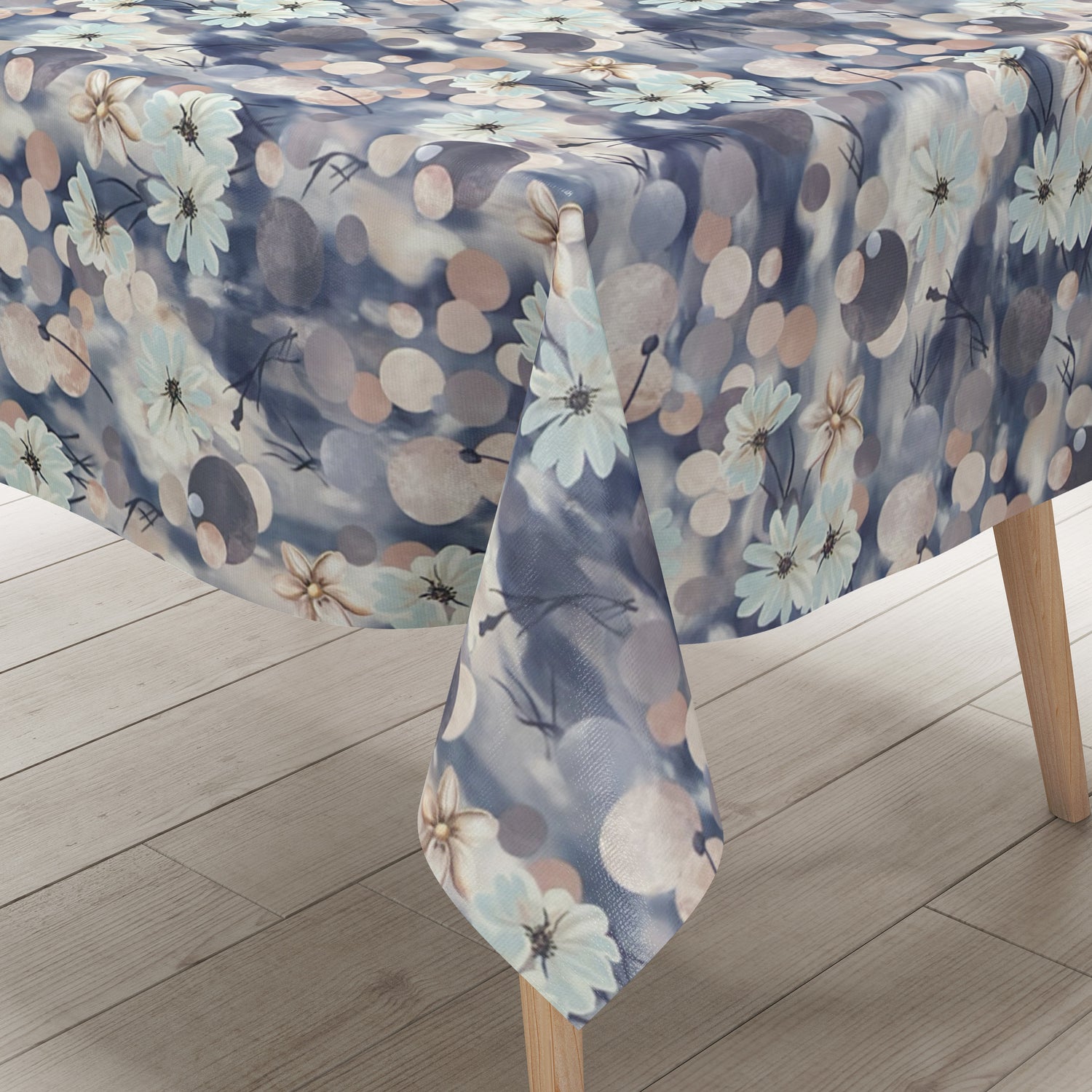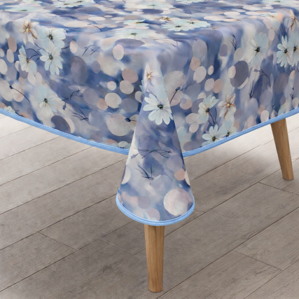 Nappe en toile cirée 01725-01 bleu clair marguerites fleurs de printemps carré rond ovale