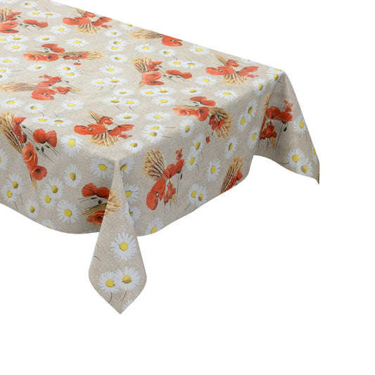 Nappe en toile cirée C146051 aspect lin grain coquelicot carrée ronde ovale
