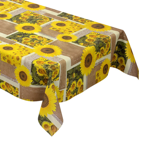 Nappe toile cirée AN10 tournesols marguerites bois carrée ronde ovale