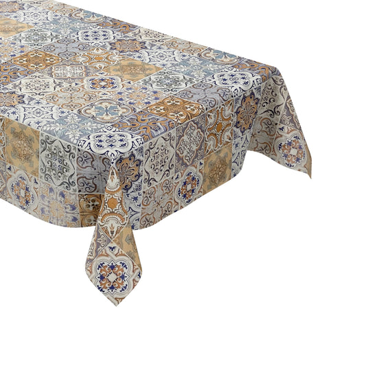 Nappe en toile cirée C141141 carreaux bleu jaune mosaïque méditerranéenne carrée ronde ovale sur mesure
