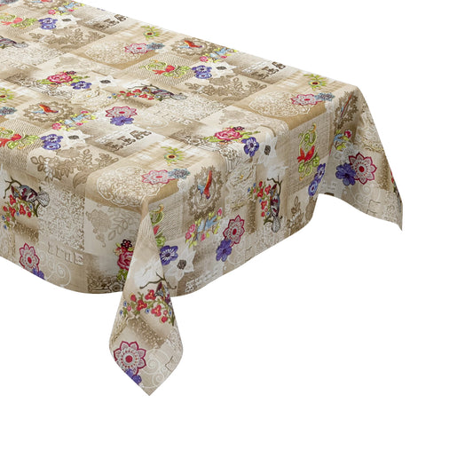 Nappe en toile cirée 890-5 beige colibri mandala fleurs bohème carré rond ovale