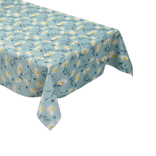 Nappe en toile cirée 01725-01 bleu clair marguerites fleurs de printemps carré rond ovale