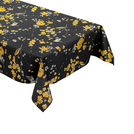 Nappe en toile cirée KE41310 fleurs de cerisier noires oiseaux carré rond ovale