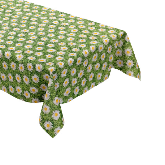 Nappe en toile cirée 01667-01 marguerites vertes fleurs de printemps carré rond ovale