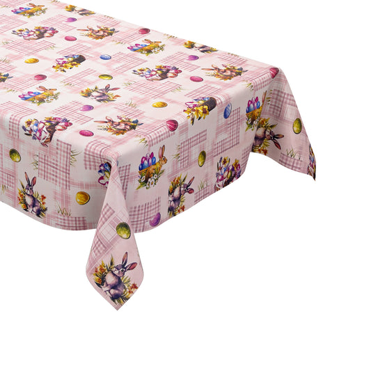 Nappe en toile cirée P1205-3 vieux rose Pâques Œufs de Pâques Lapin de Pâques carré rond ovale