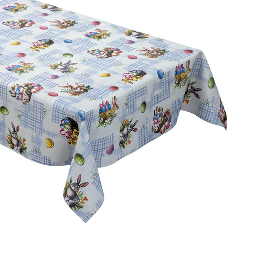 Nappe en toile cirée P1205-4 bleue Pâques Œufs de Pâques Lapin de Pâques carré rond ovale