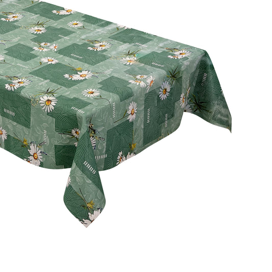 Nappe en toile cirée 01725-04 marguerites vertes fleurs de printemps carré rond ovale