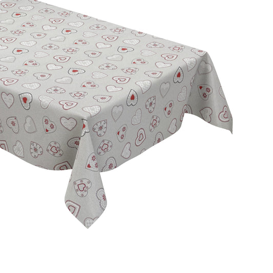 Nappe en toile cirée gaufrée B1794-05 gris chiné coeurs amour maison de campagne carré rond ovale