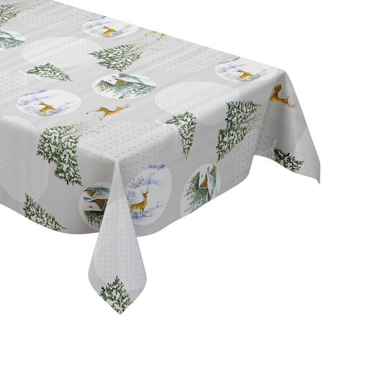 Nappe en toile cirée gaufrée B5075-01 Noël neige renne cabane carré rond ovale
