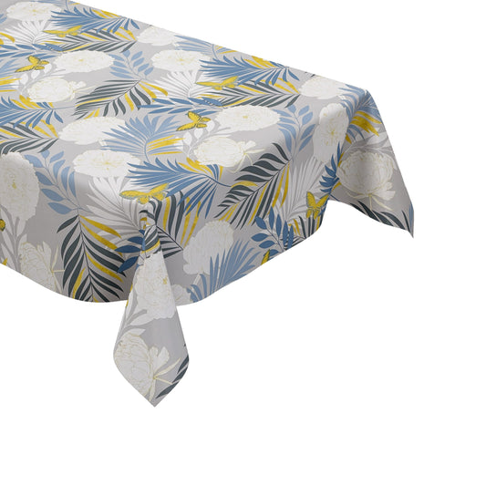 Nappe en toile cirée gaufrée B6032-01 papillons dorés et feuilles bleues sur fond gris carré rond ovale