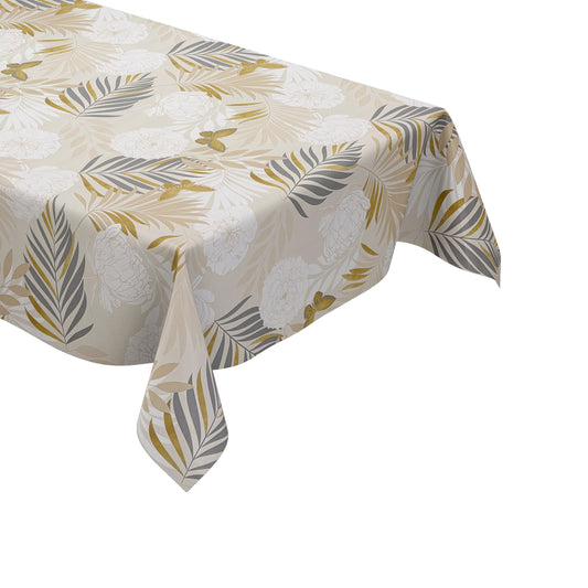 Nappe en toile cirée gaufrée B6032-02 beige doré papillons fleurs feuilles carré rond ovale