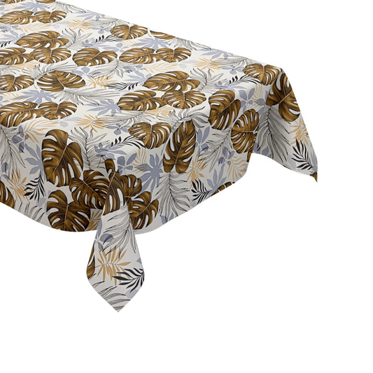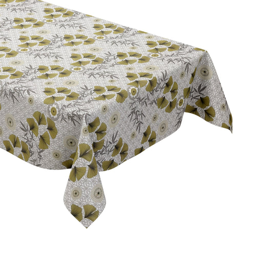 Nappe en toile cirée gaufrée B6036-01 feuilles de ginkgo dorées fleurs carrées rondes ovales