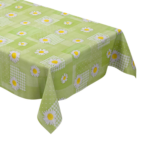 Nappe en toile cirée gaufrée KE37020 marguerites printanières vertes carrées rondes ovales