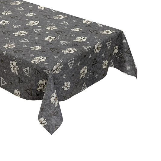 Nappe en toile cirée gaufrée P1107-6 motif floral gris carré rond ovale