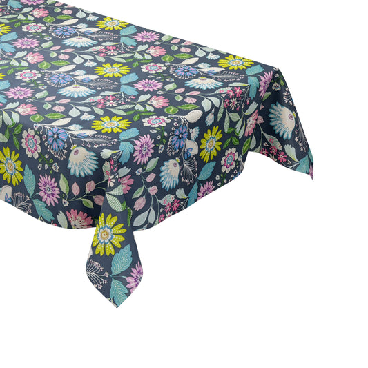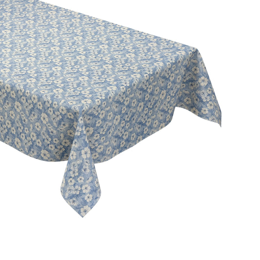Nappe en toile cirée gaufrée P8252-2 bleu prairie fleurie colorée moderne carrée ronde ovale