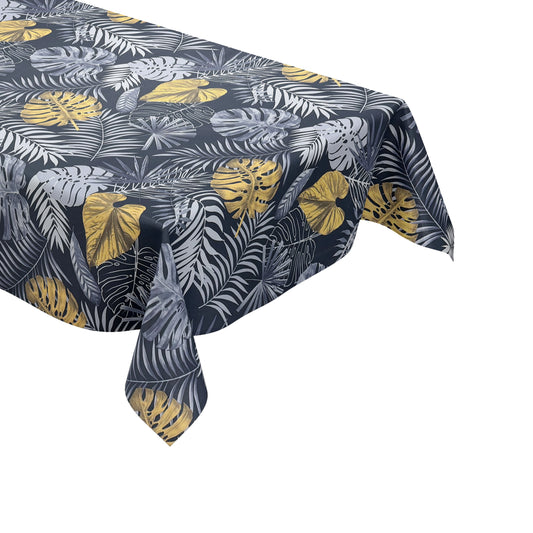 Nappe en toile cirée gaufrée P8184-2 marine or jungle monstera palmiers carré rond ovale