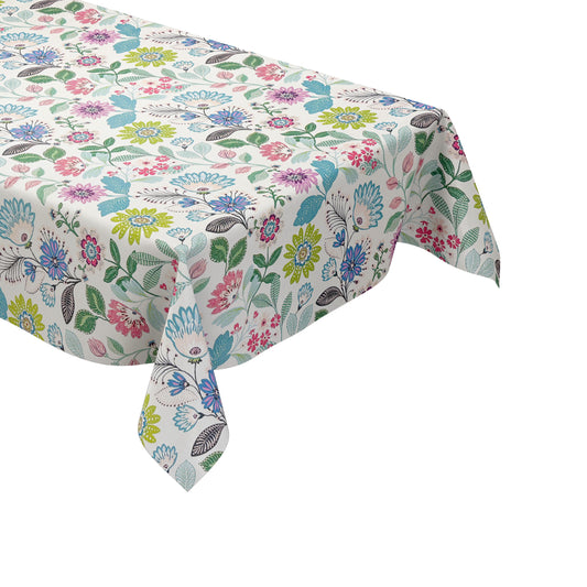 Nappe toile cirée KE41610 fleurs colorées fleurs sur blanc carré rond ovale