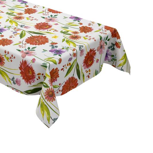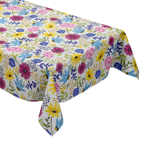 Nappe en toile cirée gaufrée P8252-1 blanche prairie fleurie colorée moderne carrée ronde ovale